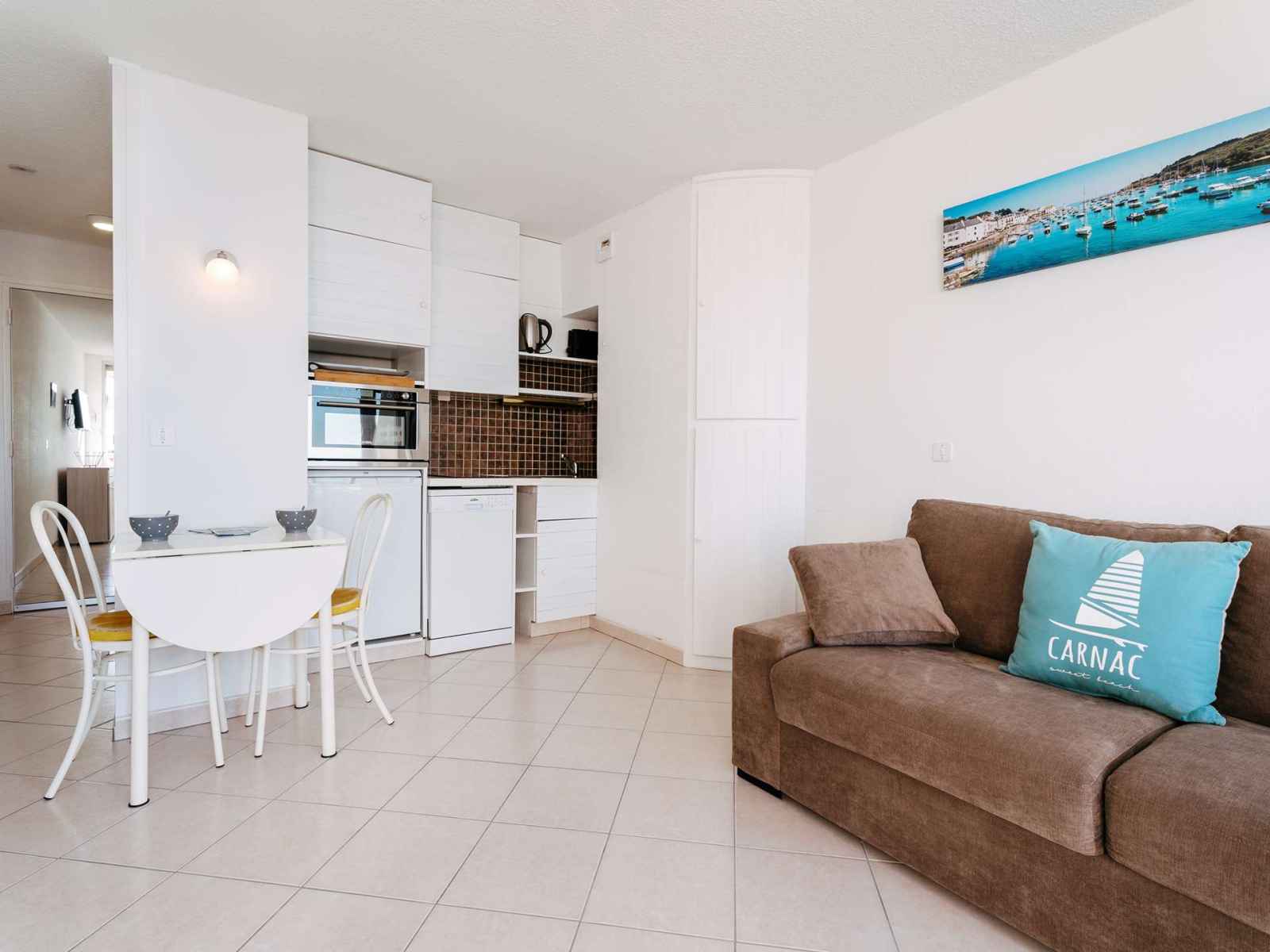 Face à la grande plage de carnac, proche commerces, studio (env. 22m²) pour 2 personnes avec balcon orienté plein sud et splendide vue mer, situé dans la résidence le britannia (4e étage - ascenseur - porte 408) :