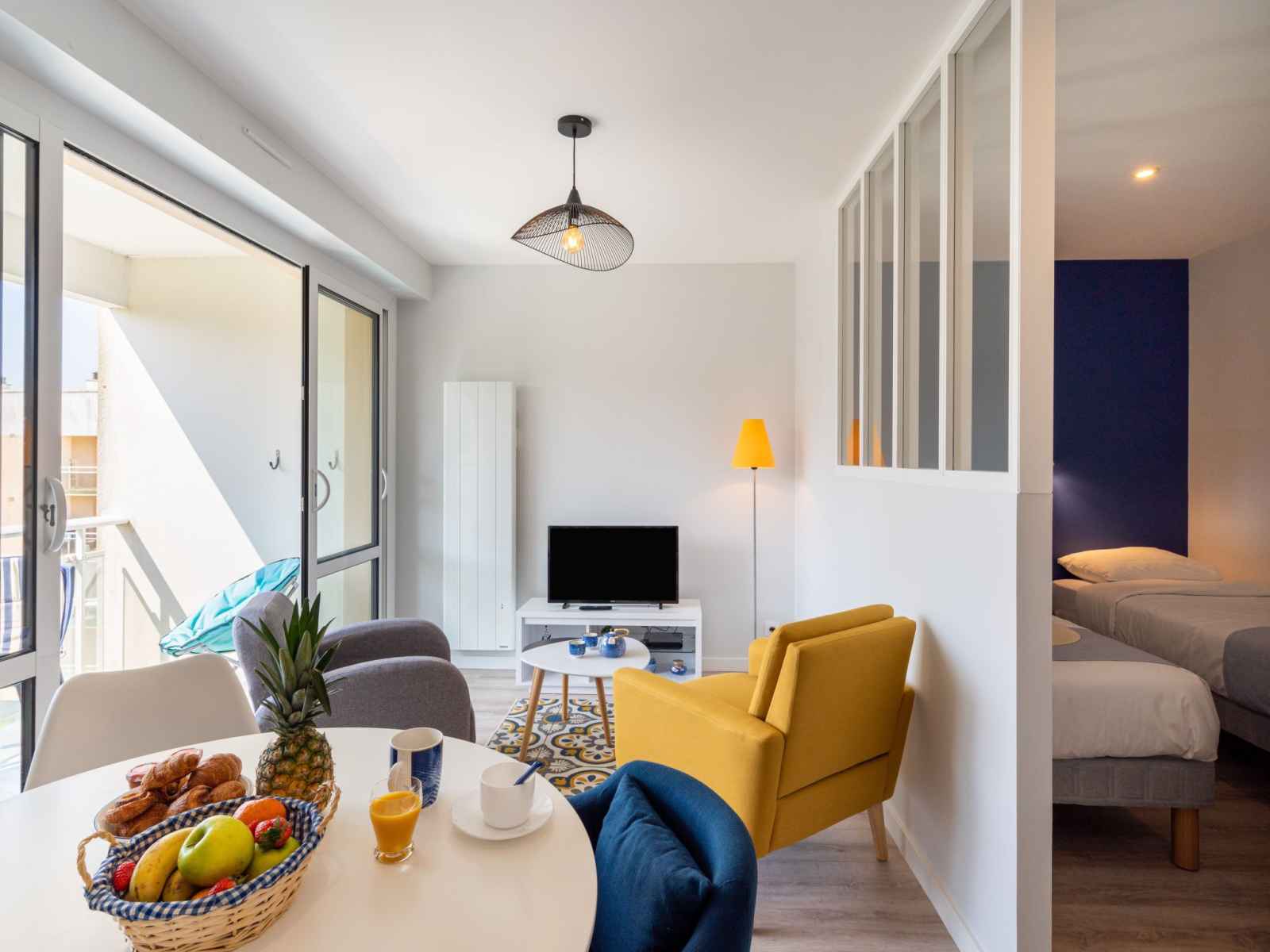 Studio 26 m2 au 4ème étage. complètement rénové en 2021, aménagement très confortable: séjour/salle à manger avec 2 lits (80 cm, longueur 190 cm), tv (écran plat). sortie sur le balcon. cuisine ouverte (four, lave-vaisselle, 2 plaques à induction, grille-pain, bouilloire électrique, micro-ondes, cafetière électrique). douche/wc.