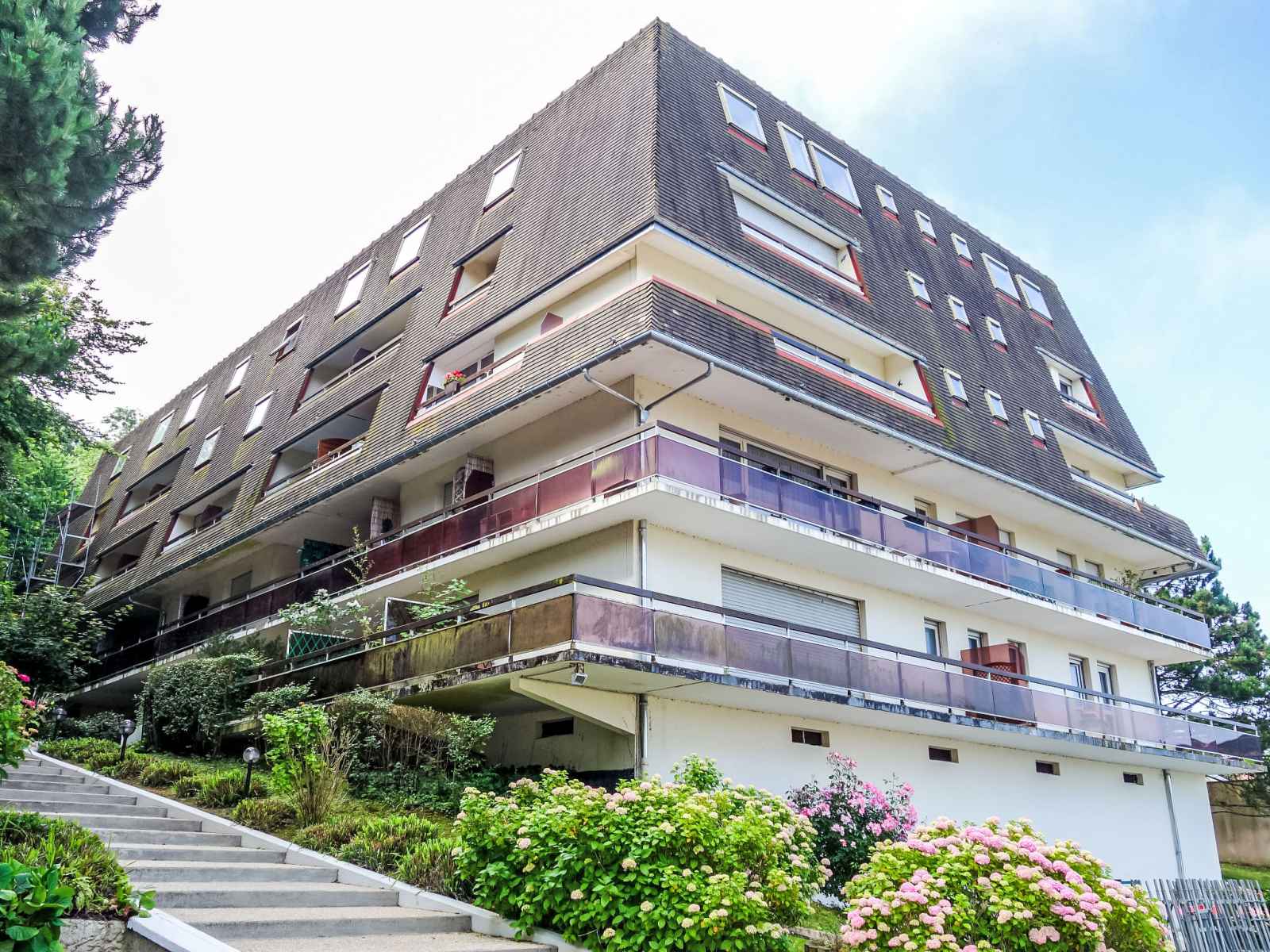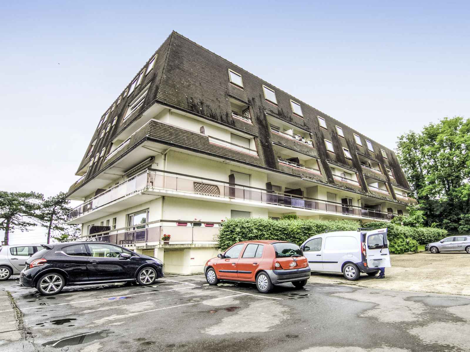 Trouville sur mer: résidence "les flots bleus", de 4 étages. en-dehors de la localité, sur une colline, à 900 m de la mer, à 900 m de la plage. infrastructures de la résidence: ascenseur. (5 marches). magasins 2 km, magasin d'alimentation 2.1 km, supermarché 2.1 km, arrêt de bus "trouville prémanoir" 300 m, gare ferroviaire