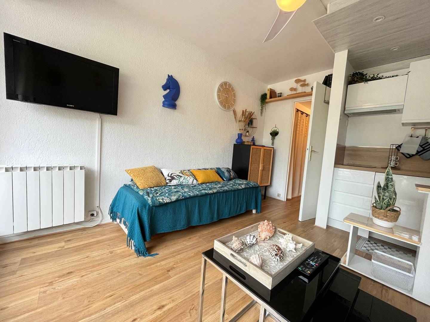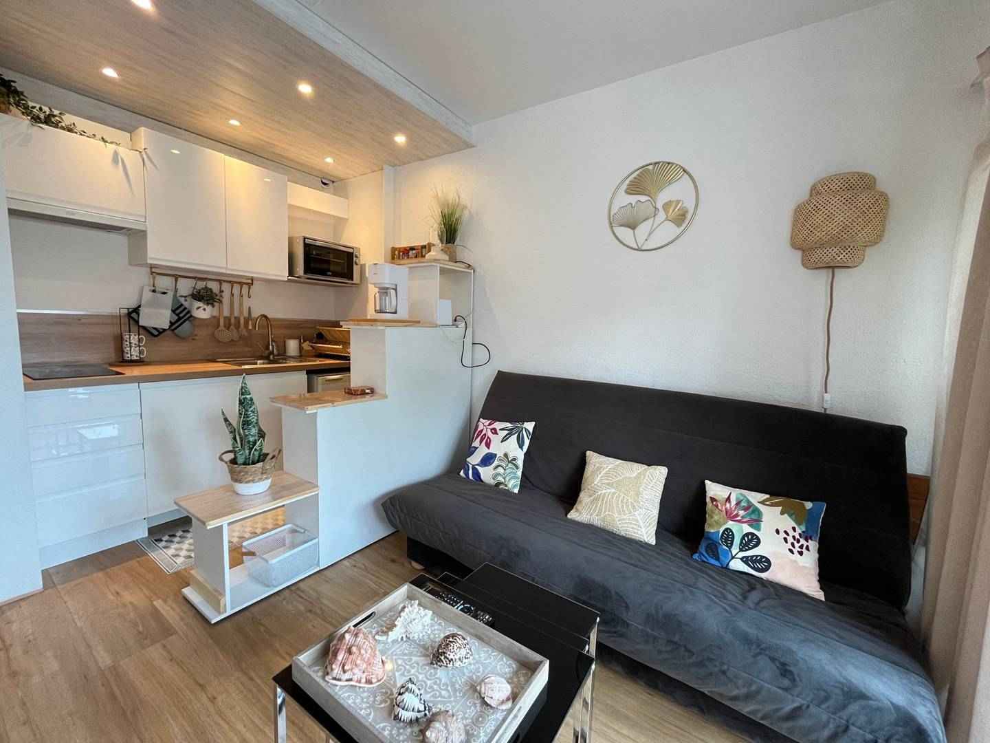 situé non loin de la plage du grau du roi, ce coquet studio de 20m² vous ravira par ses prestations. entièrement rénové, il offre une grande pièce principale avec une cuisine toute équipée, un balcon ainsi qu une loggia. son canapé convertible et son lit simple, lui