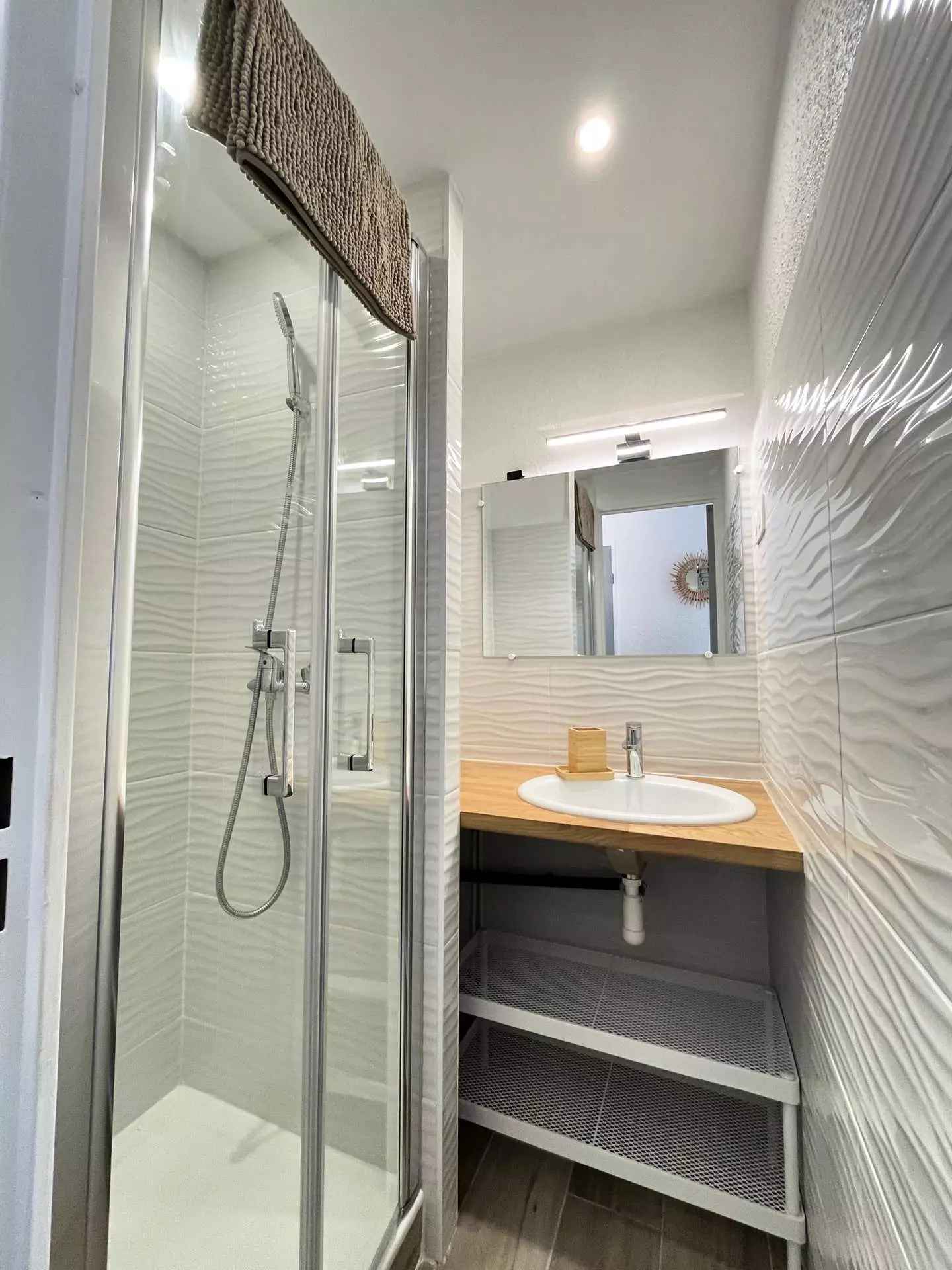 composé d une pièce à vivre avec un coin cuisine, une salle d eau avec toilettes séparés, ce studio est agréable et fonctionnel. ses 2 lits superposés en cabine