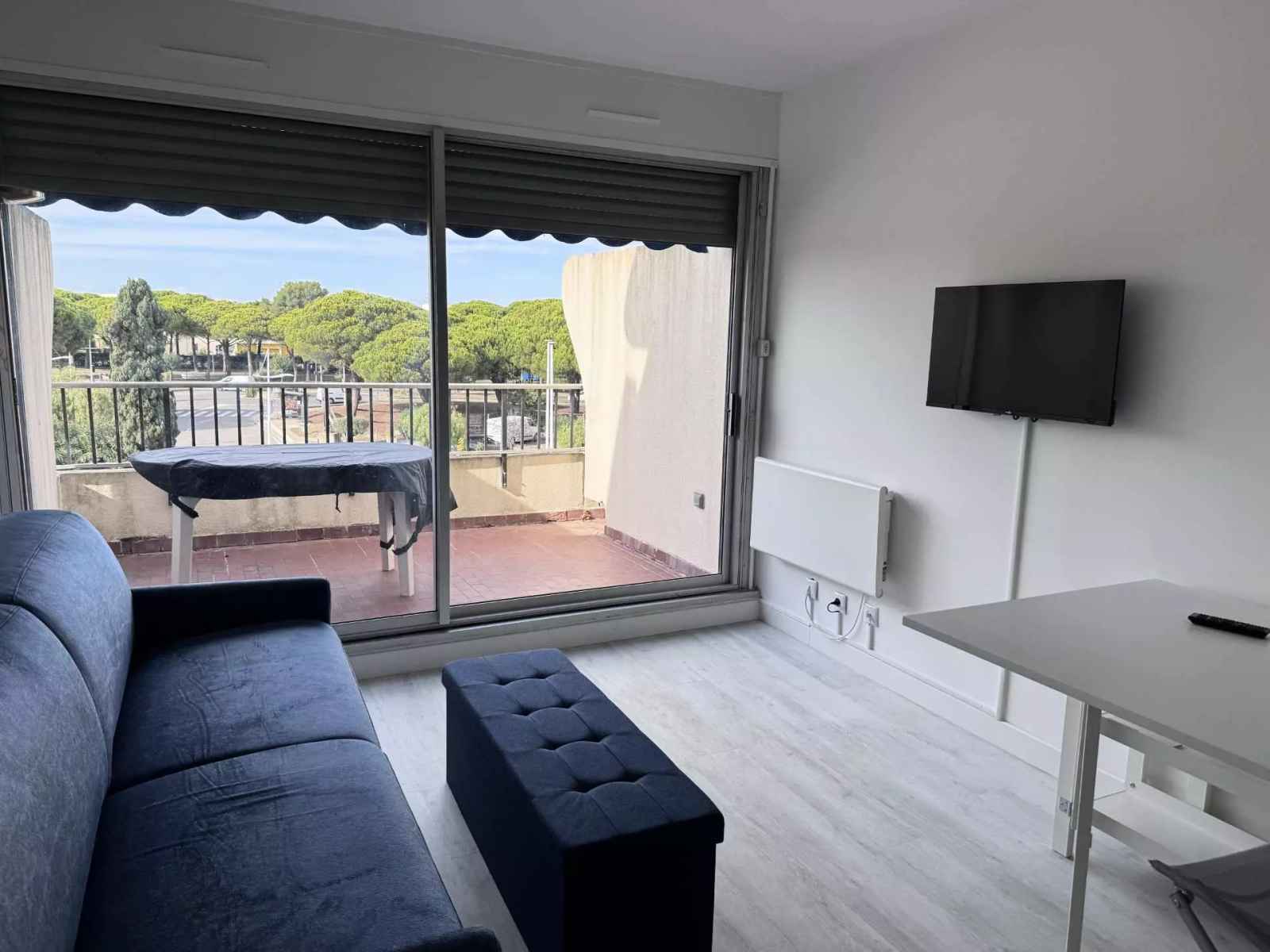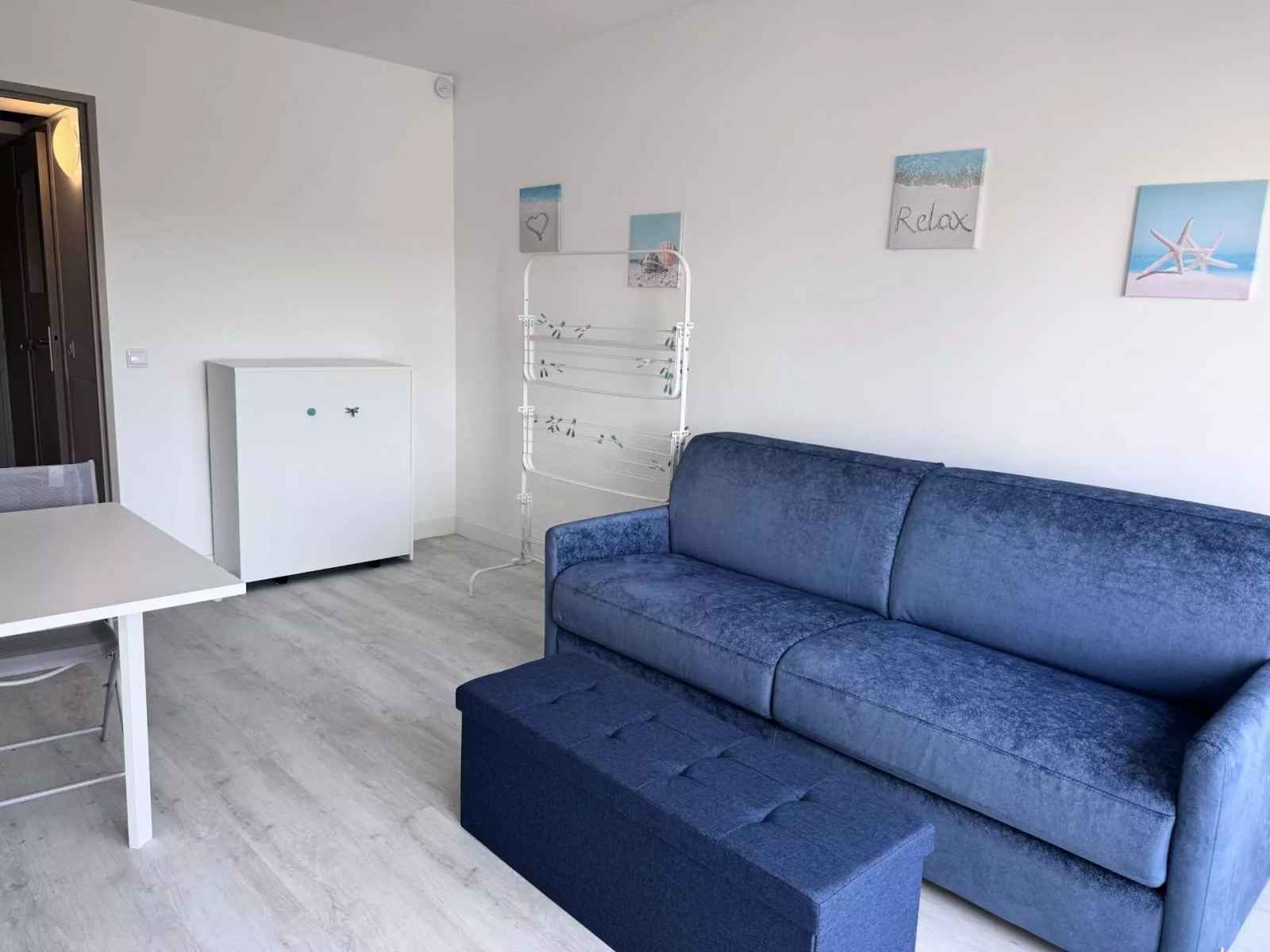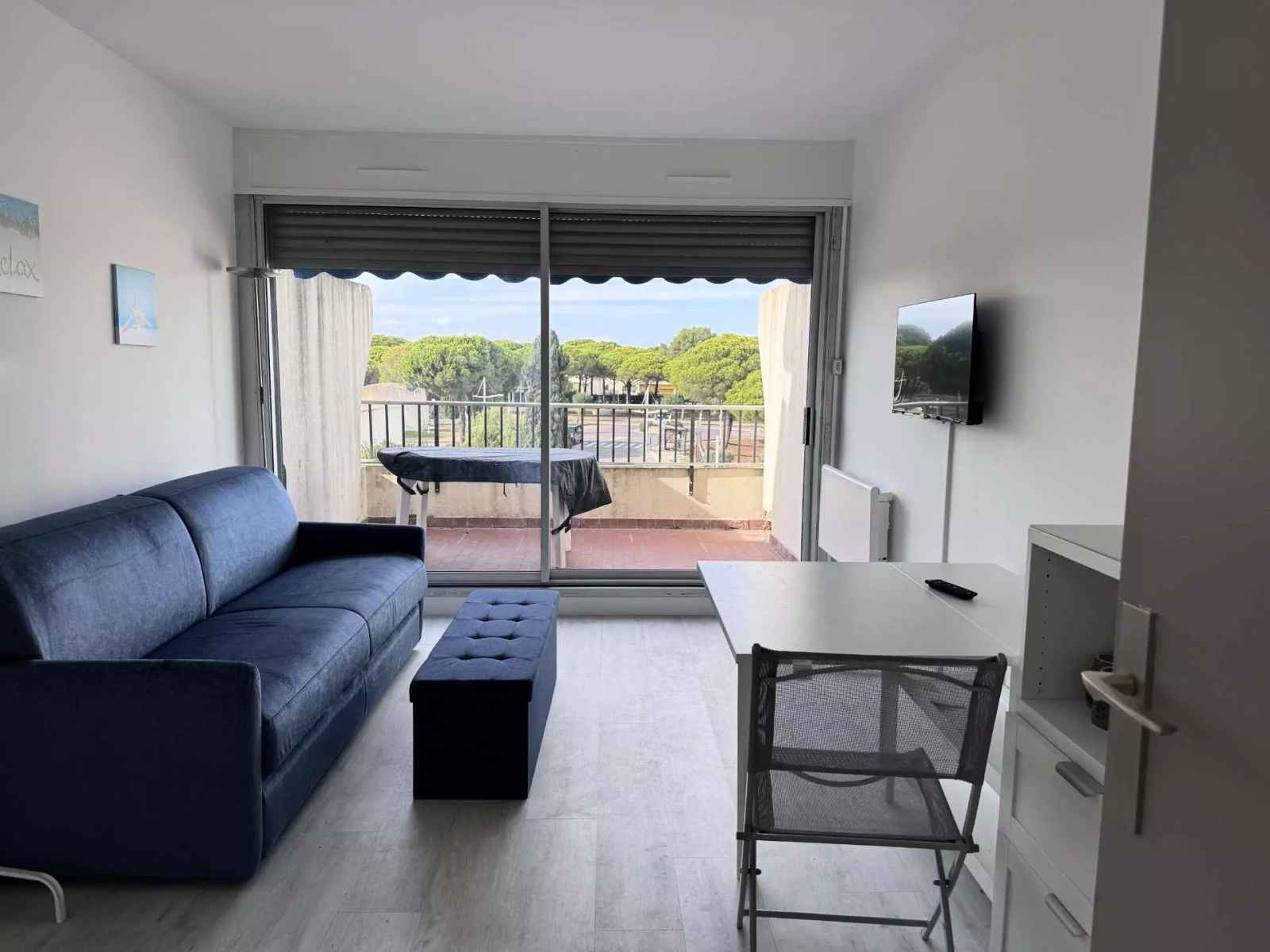 situé au 3ème et dernier étage de la résidence les jardins du port, nous vous proposons ce charmant appartement de 23m². il se compose d un coin cuisine ouvert sur une grande pièce à vivre et une une salle d eau.. avec son canapé convertible de taille king size et son lit simple depliable,