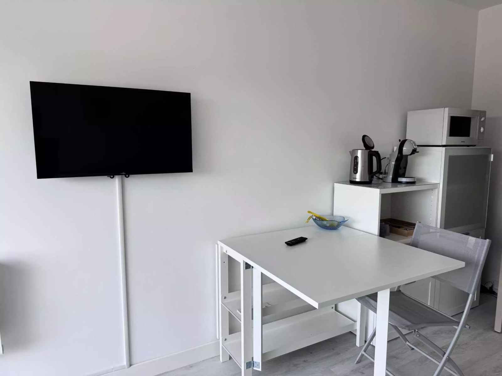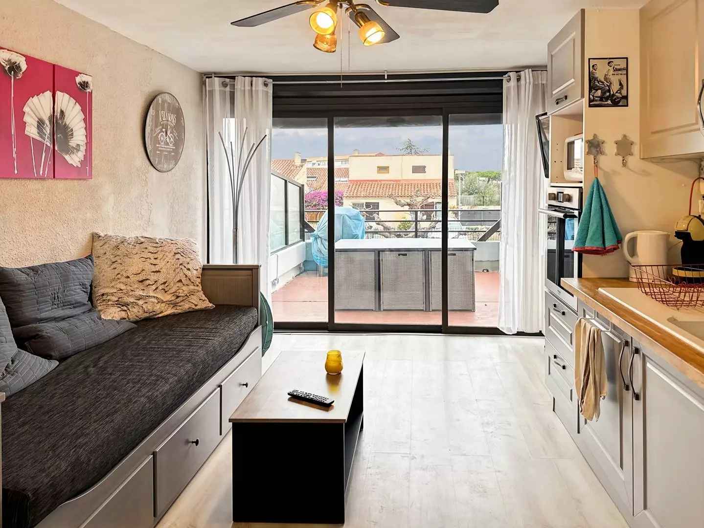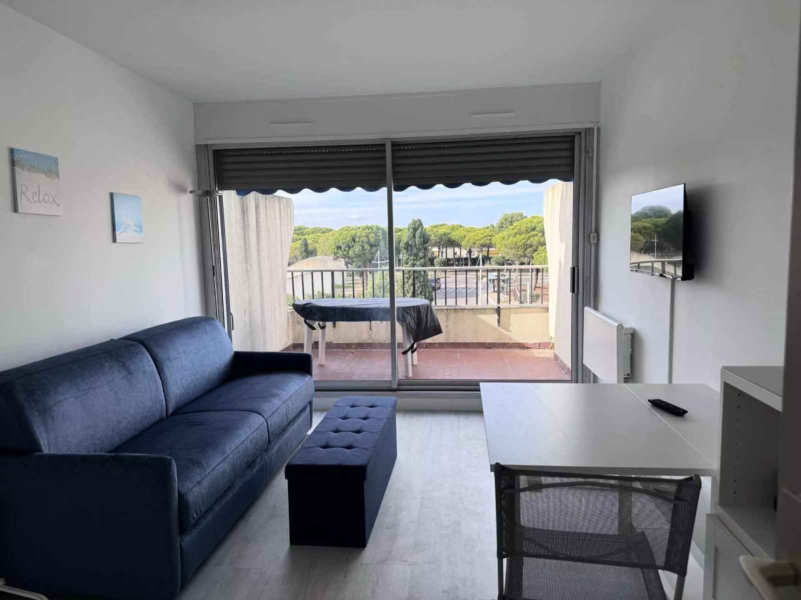 situé au 3ème et dernier étage de la résidence les jardins du port, nous vous proposons ce charmant appartement de 23m². il se compose d un coin cuisine ouvert sur une grande pièce à vivre et une une salle d eau.. avec son canapé convertible de taille king size et son lit simple depliable,