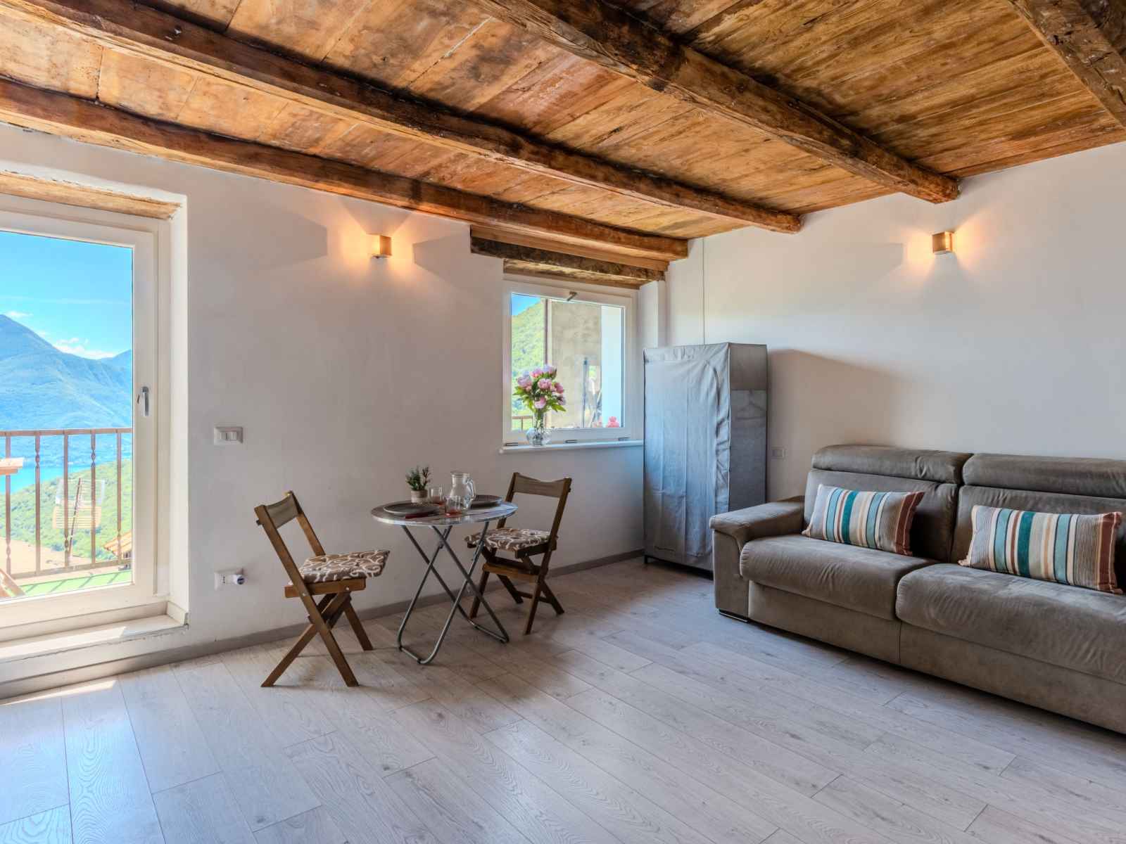 congélateur, cafetière électrique). Bain/WC. Pas de chauffage. Sol en parquet, sol en pierres naturelles. Petit balcon. Mobilier de balcon. Superbe vue panoramique sur le lac, les montagnes et la localité. A disposition: lave-linge, sèche-cheveux. Internet (Connexion WIFI, gratuit). Place de parking à 50 m. Veuillez noter: logement non-fumeur. Maximum 1 animal/ chien autorisé. Détecteur de fumée, extincteur. IT013092C25HEVFLDR
