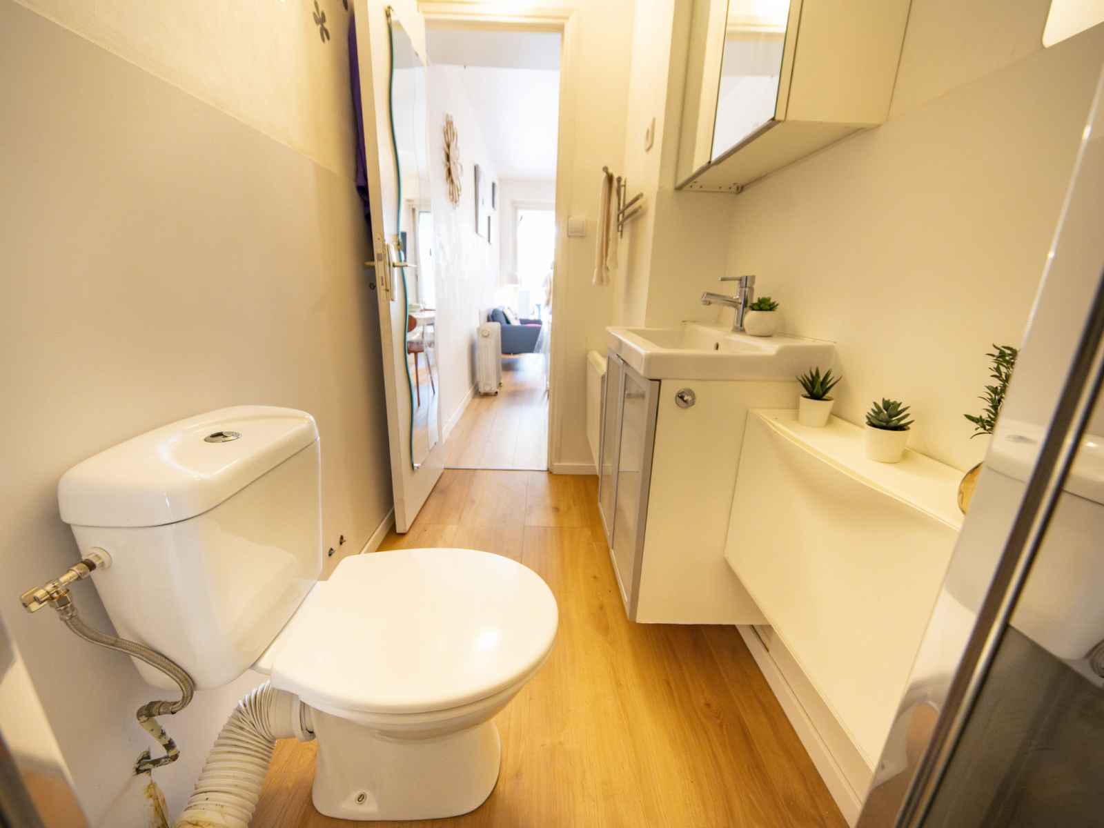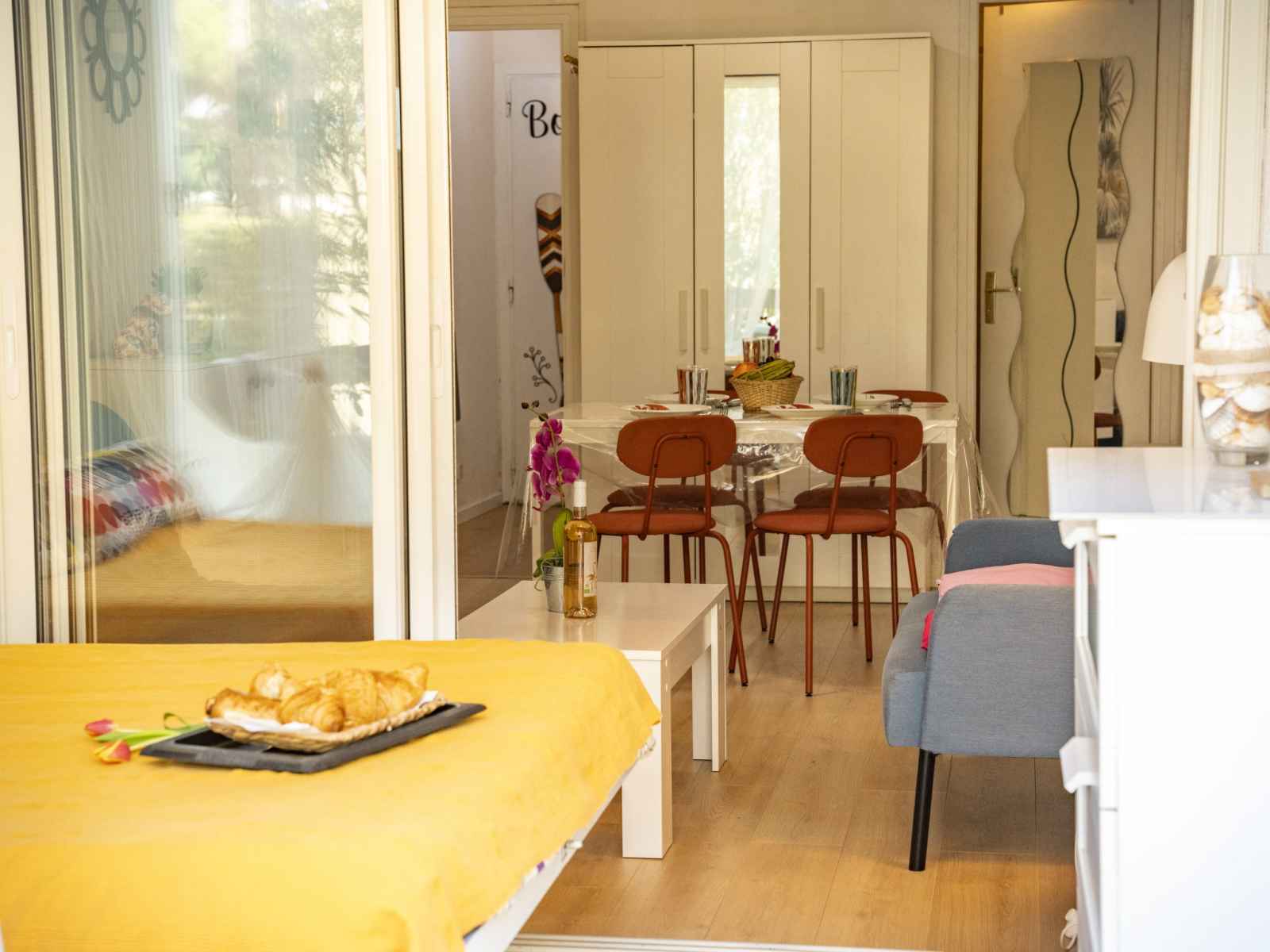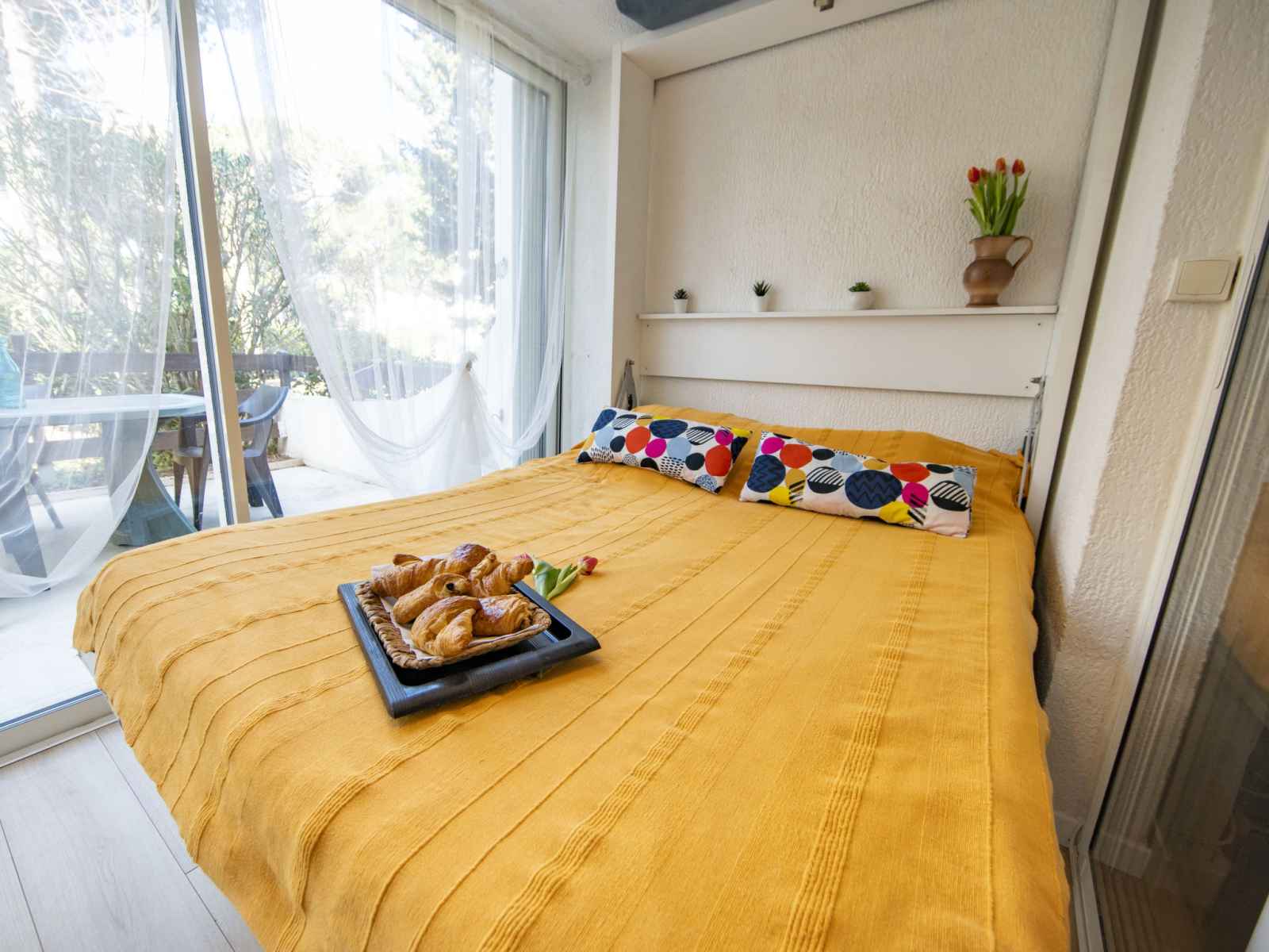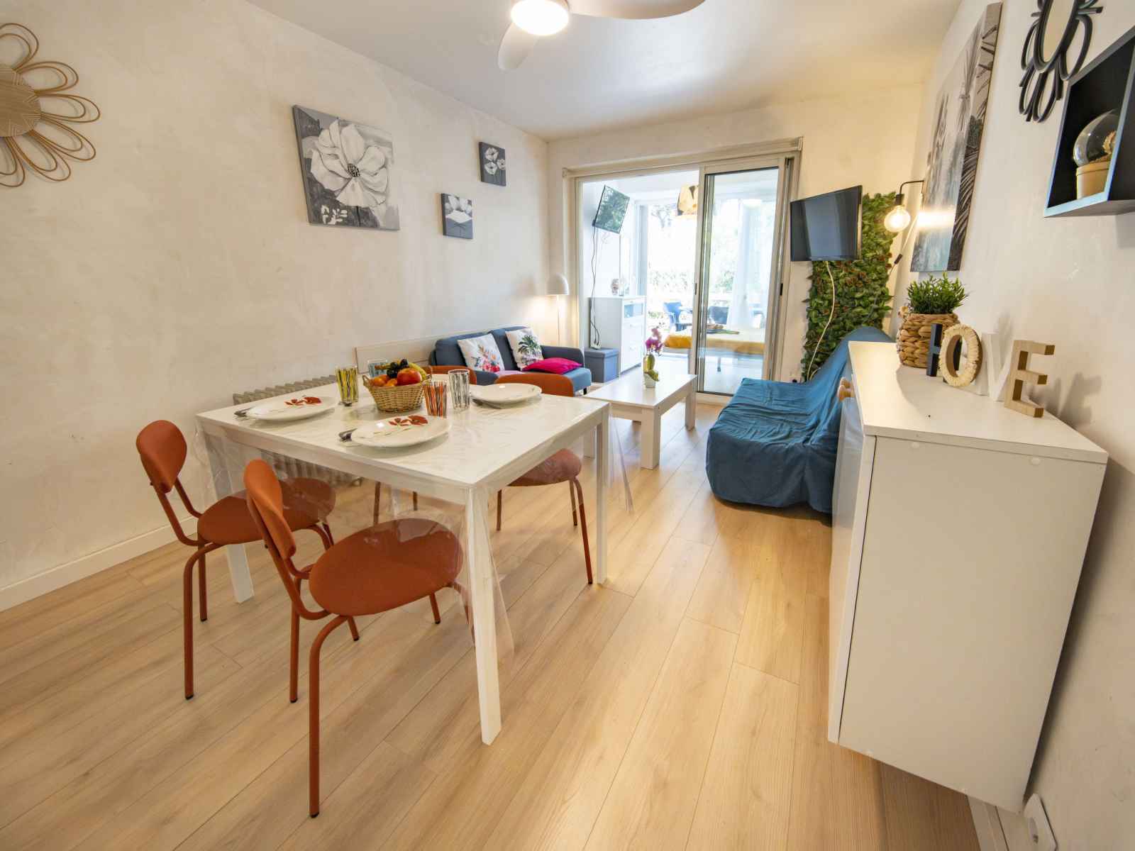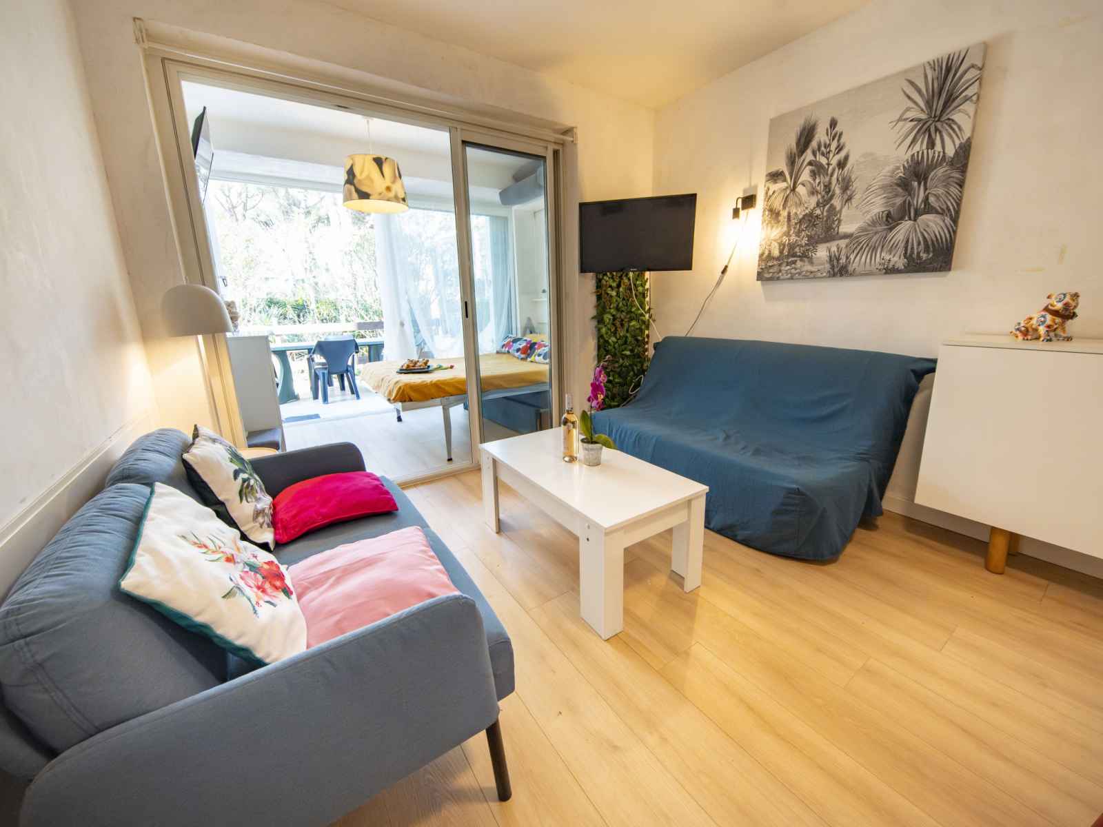 Studio 27 m2, au rez-de-chaussée. aménagement agréable: séjour/salle à manger avec 1 divan-lit double (140 cm, longueur 190 cm), tv (écran plat), radiateur chauffage électrique et ventilateur. petite alcôve, fenêtre donnant sur le séjour, fenêtre donnant sur la cour avec 1 lit double (140 cm, longueur 190 cm), tv (écran plat),