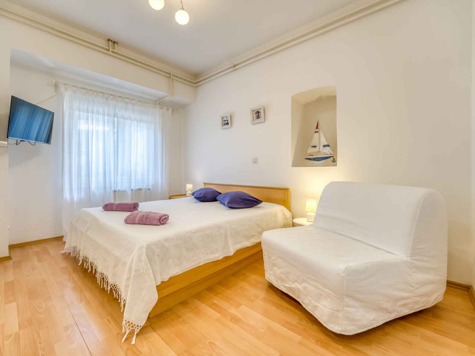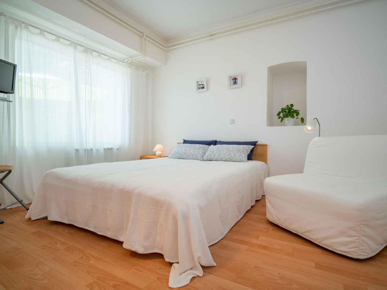 Studio 23 m2, au rez-de-chaussée. studio avec 1 grand-lit (160 cm, longueur 200 cm), 1 lit pliant et tv (satellite) (écran plat), air-conditionné. cuisine ouverte (2 plaques de cuisson) avec table pour les repas. douche/wc. grande terrasse. meubles de terrasse, barbecue. superbe vue panoramique sur la mer et les alentours. a disposition: