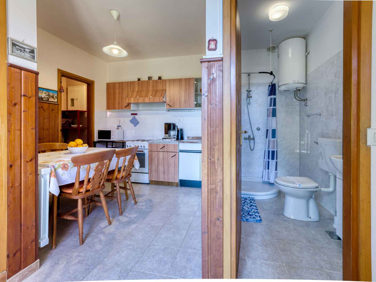 Immeuble "marija". 900 m du centre, situation tranquille, ensoleillée sur un versant, à 650 m de la mer, à 650 m de la plage, dans la verdure. en commun: jardin pelouse 60 m2, plantes. barbecue. infrastructures de la maison: accès internet, chauffage central. accès en voiture par un chemin étroite. place de parking près de la maison sur le
