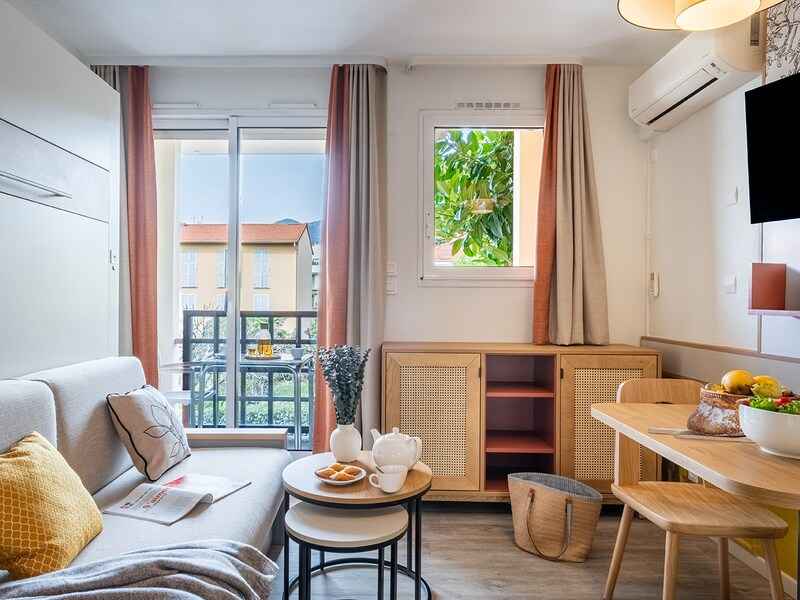 Résidence bien située. Appartement de taille suffisante pour deux personnes et bien équipé en ustensiles de cuisine. Très proche de la plage et des commerces. Gare accessible à pied.