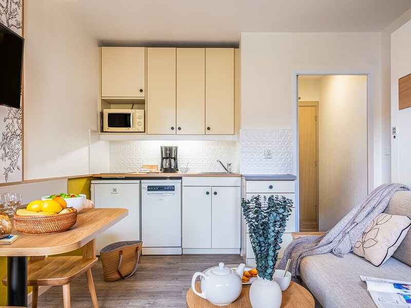 étages avec ascenseur avec des appartements entièrement équipés et climatisés, allant du studio 2 personnes au studio 4 personnes.