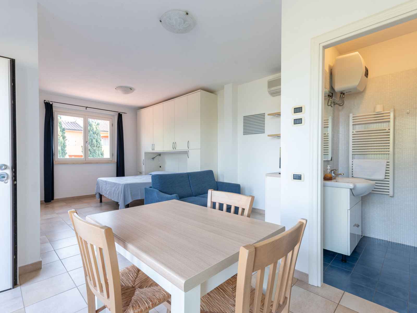 Studio 31 m2 au 1er étage. logement idéal pour 2 adultes + 1 enfant. aménagement plaisant: séjour/salle à manger ouvert avec 1 divan-lit, 1 lit double, table pour les repas, coin-cuisine et tv. sortie sur la terrasse. (four, 4 feux). sortie sur la terrasse. douche/wc. air-conditionné, chauffage à air chaud. petite terrasse. meubles de