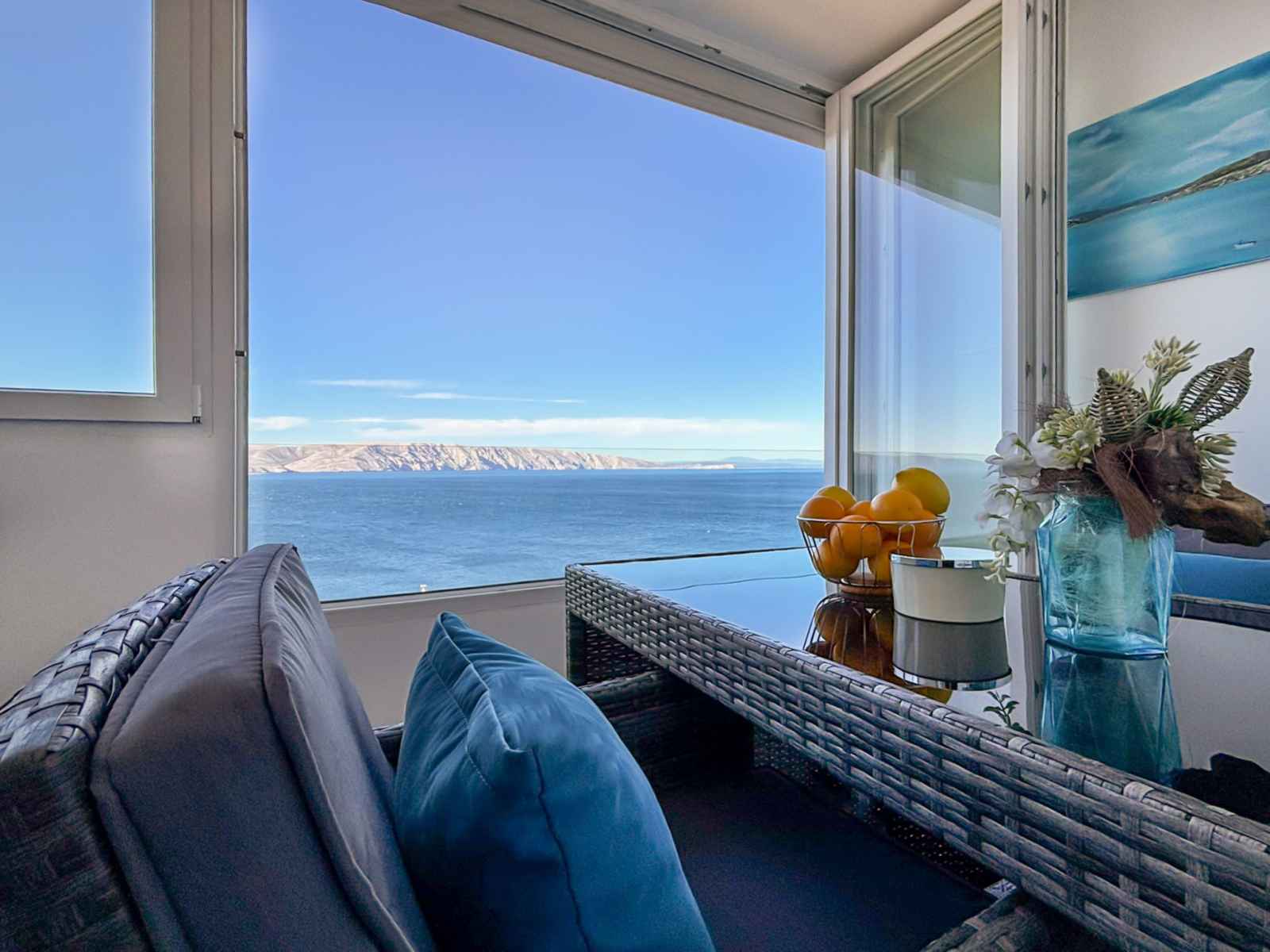 Mobilier de balcon, loggia. Belle vue panoramique sur la mer. A disposition: lave-linge, sèche-linge, fer à repasser, lit bébé, sèche-cheveux. Internet (Connexion WIFI, gratuit). Veuillez noter: maison non-fumeur. Extincteur.