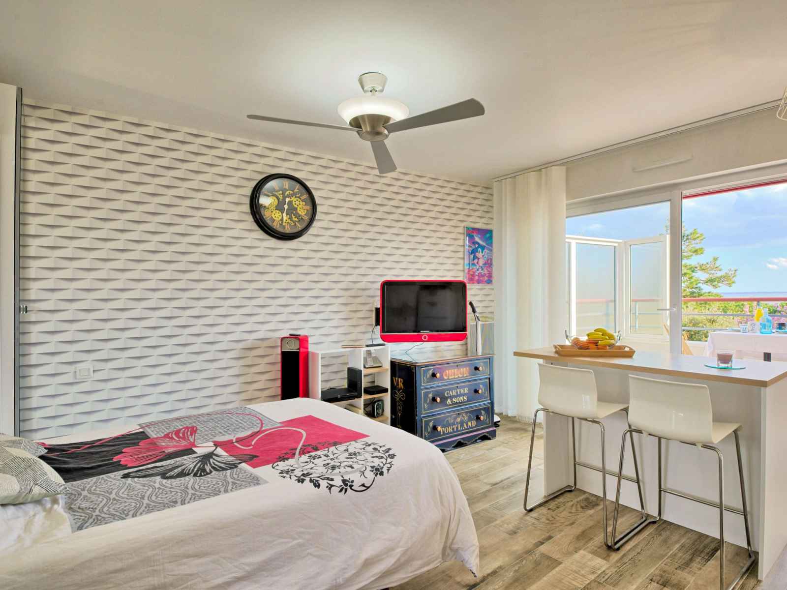 "charme de villès martin" studio 28 m2 au 3ème étage. clair, rénové en 2022, aménagement agréable: entrée. séjour avec 1 lit rabattable (140 cm, longueur 200 cm), tv (écran plat). sortie sur la terrasse. coin cuisine (2 plaques à induction, grille-pain, bouilloire électrique, cafetière électrique, combiné micro-ondes). douche/wc.