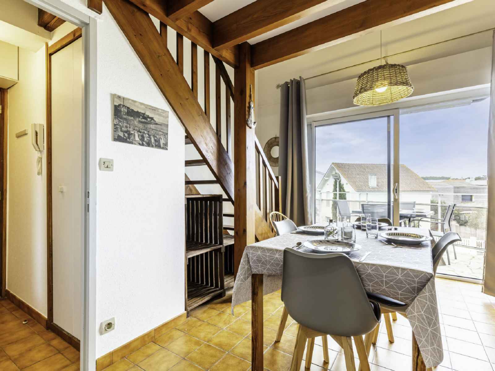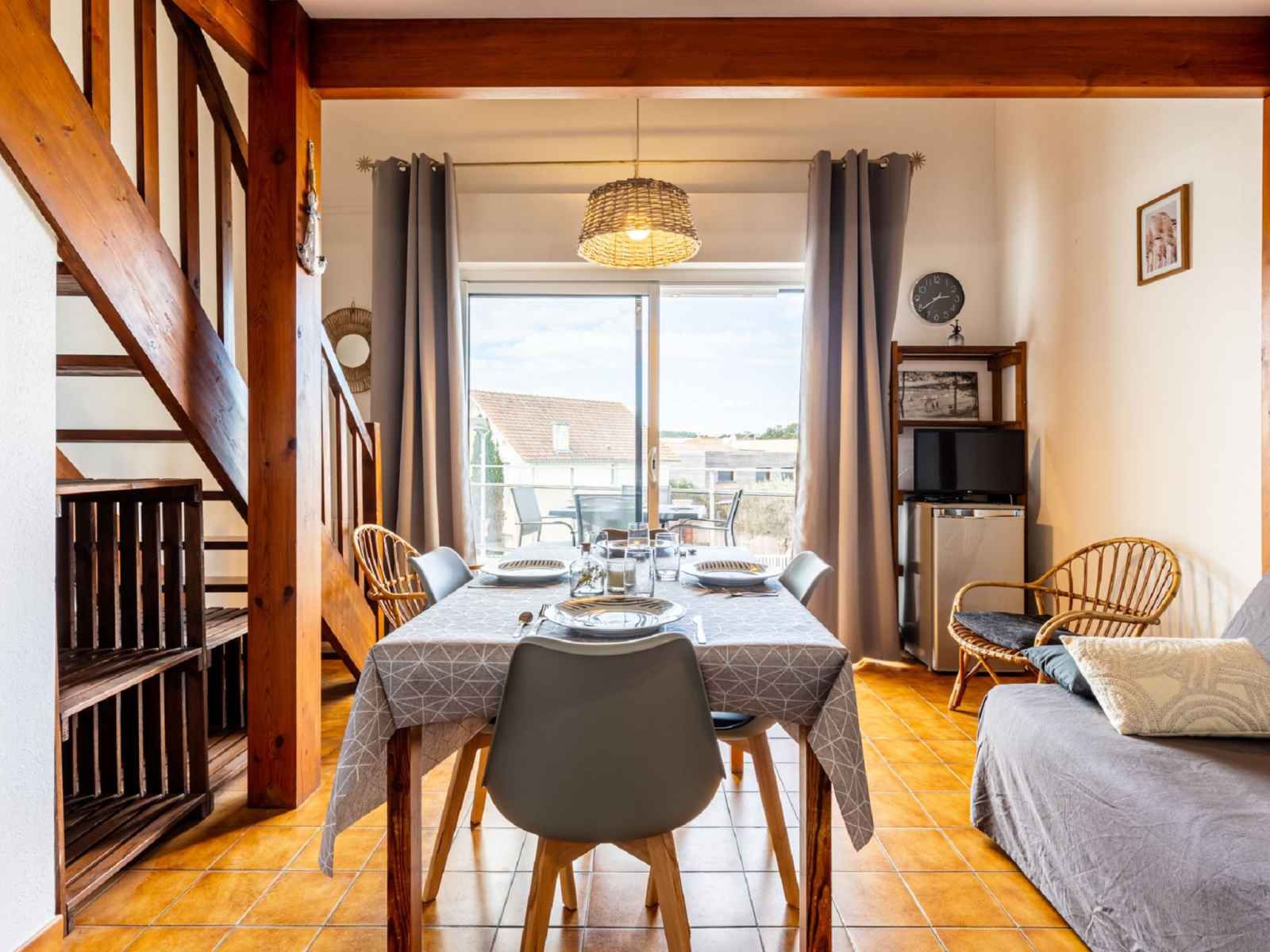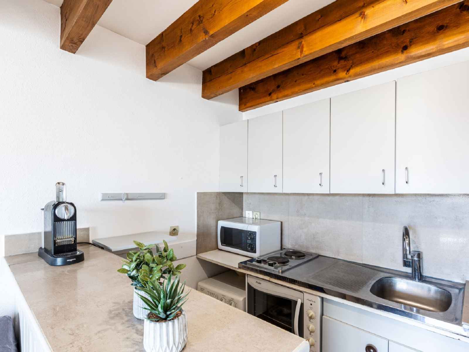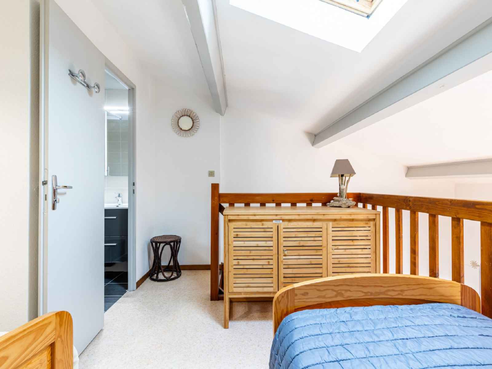 Studio 32 m2 sur 2 niveaux au 1er étage. aménagement fonctionnel: séjour/salle à manger avec 1 divan-lit double (1 x 140 cm, longueur 190 cm), tv (écran plat). sortie sur la terrasse. coin cuisine (2 plaques de cuisson, mini-four, lave-vaisselle, bouilloire électrique, micro-ondes, cafetière électrique). wc séparé. chauffage électrique.