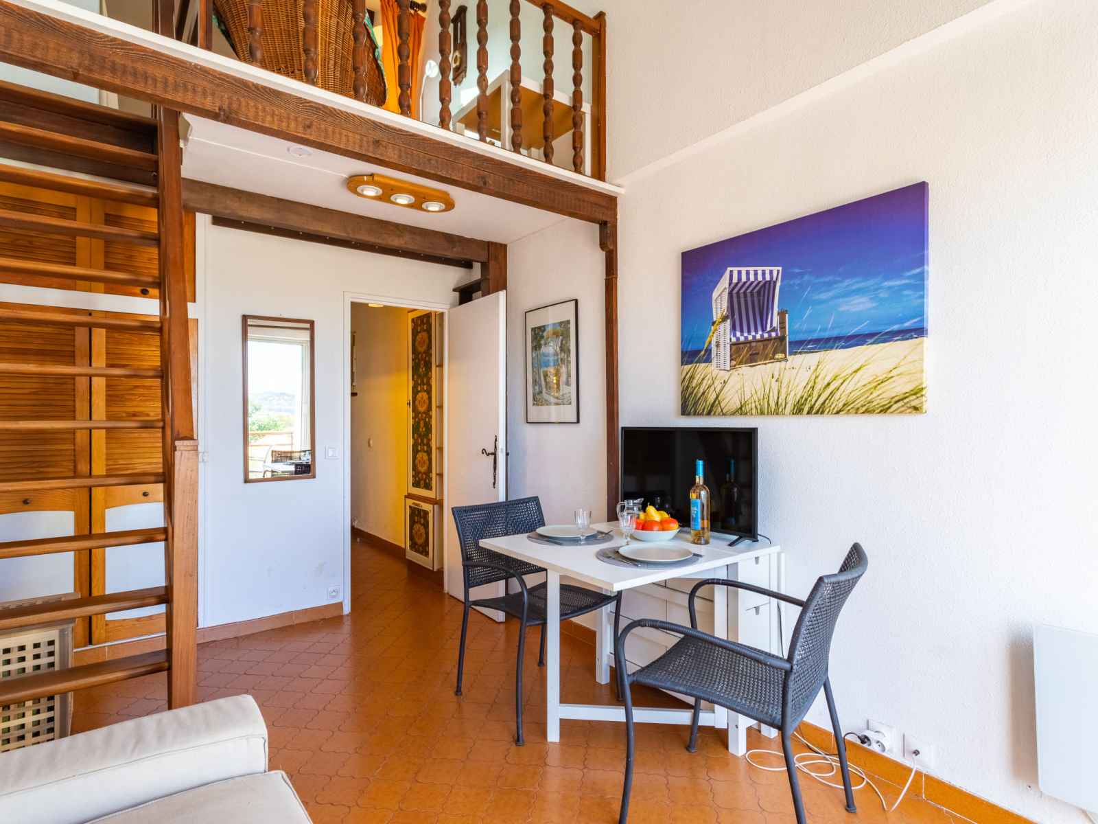 "résidence héraclée 1" studio 35 m2 au 4ème étage. aménagement fonctionnel: séjour avec 1 lit (80 cm, longueur 190 cm), tv (écran plat), dvd. sortie sur le balcon. coin cuisine (4 plaques vitrocéramiques, micro-ondes, cafetière électrique). douche/wc. chauffage électrique. À l'étage supérieur: (escalier raide) galerie avec 2 lits