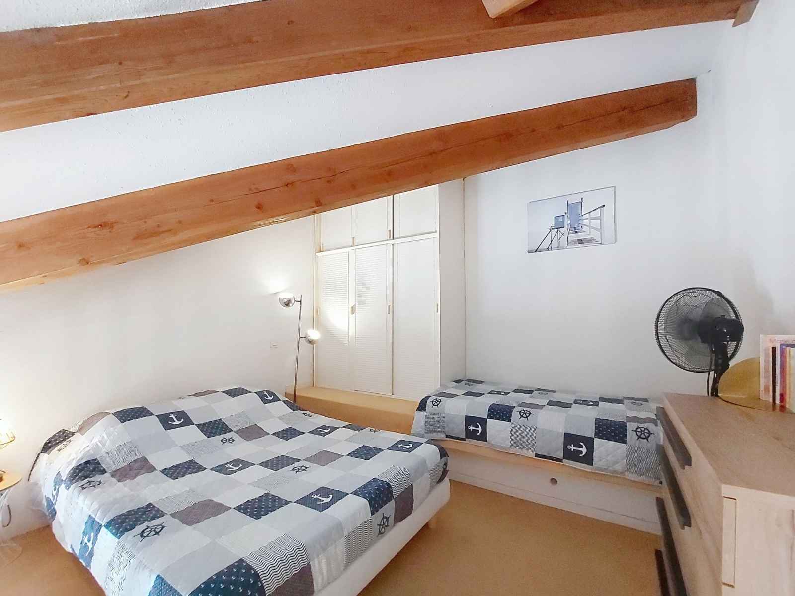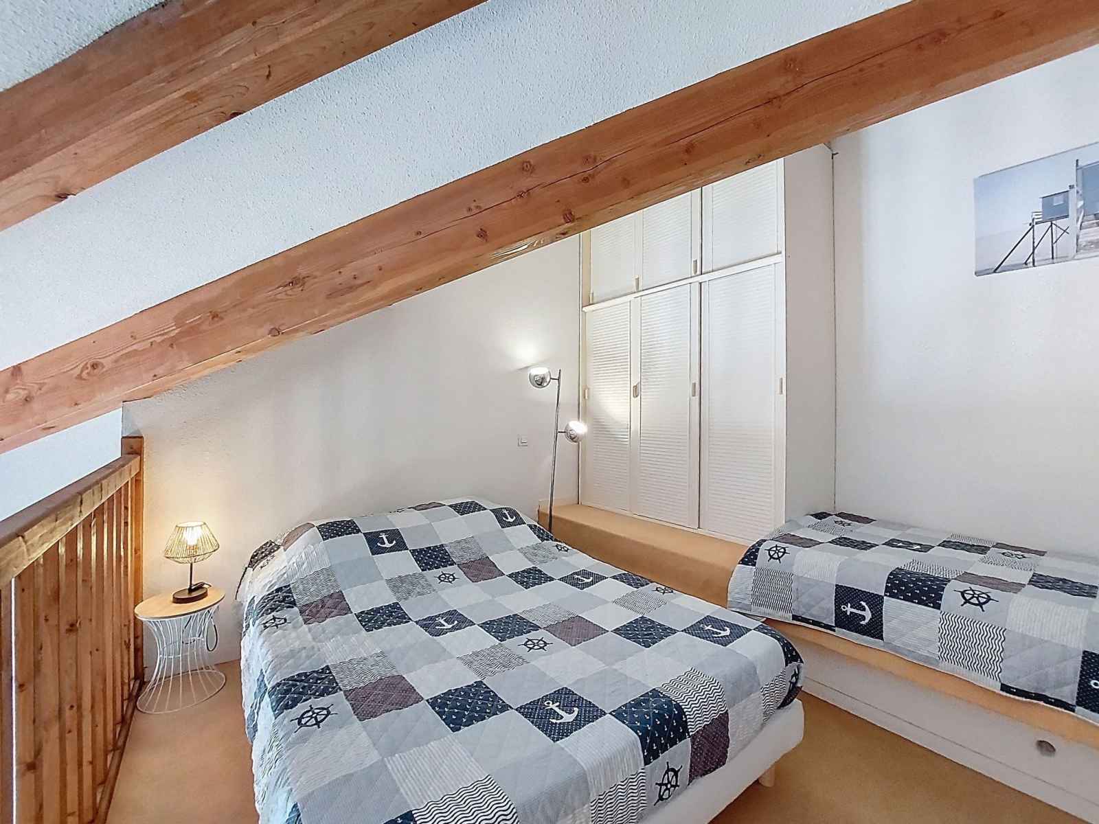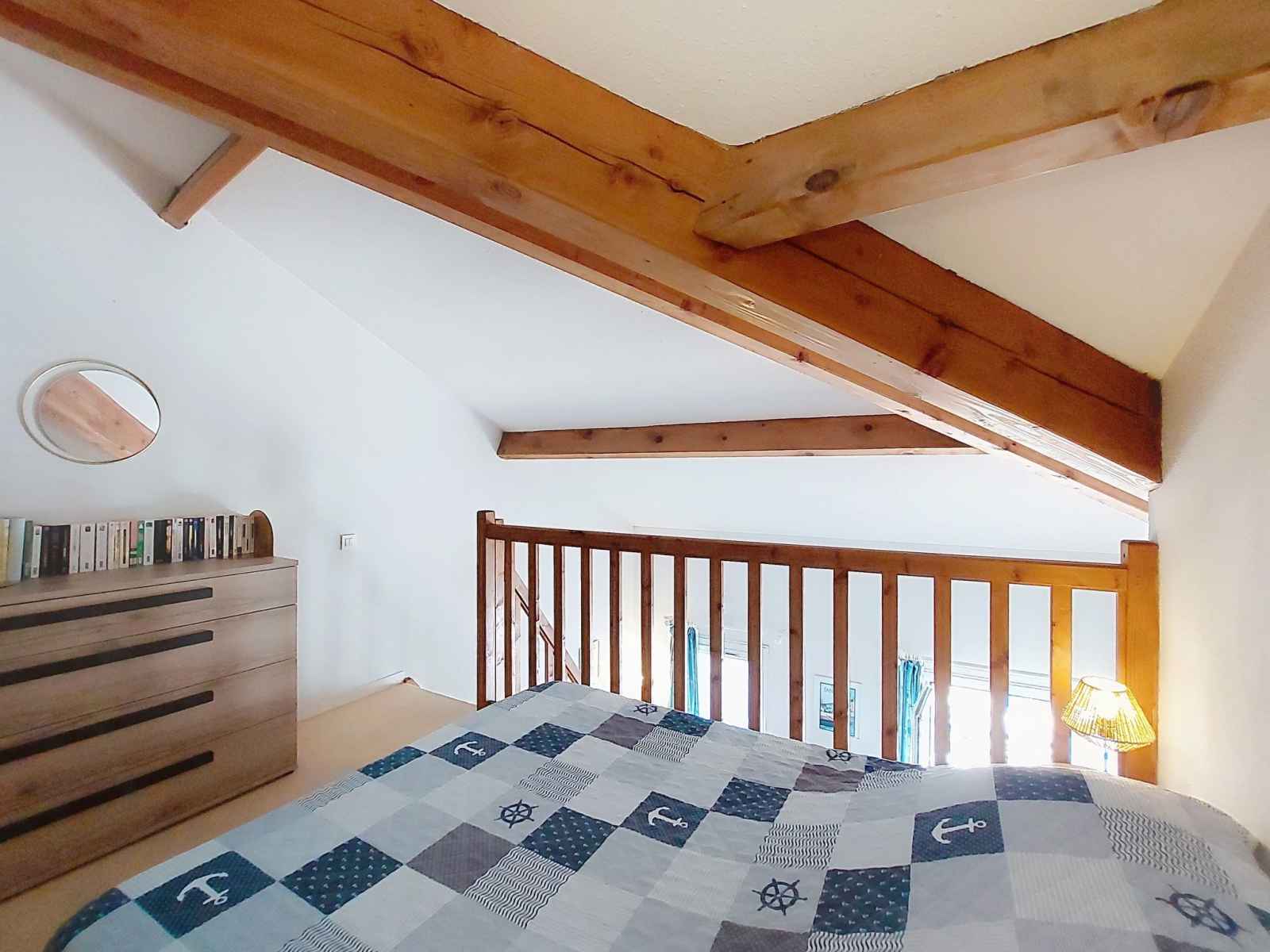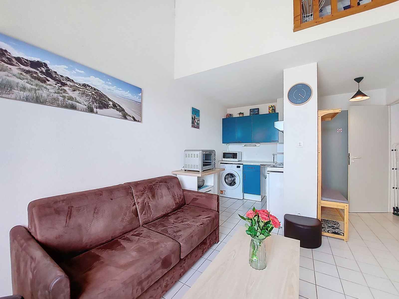 avec 1 grand-lit (1 x 140 cm, longueur 190 cm). Balcon 5 m2, situation sud et situation ouest. Mobilier de balcon. A disposition: lave-linge, sèche-cheveux. Internet (Connexion WIFI, en sus). Veuillez noter: non recommandé pour des enfants en bas âge. Logement non-fumeur. Détecteur de fumée. Logement non adpaté aux enfants en bas âge : Il n'y a pas de barrière de sécurité au niveau de l'escalier de la mezzanine. Au lieu d'une chambre fermée, des espaces de couchage sont situés dans une zone ouverte (galerie, alcôve...). Annonce d'un particulier (art 155, IV du CGI).